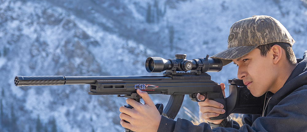 this scope fits nicely on Coldboremiracle’s custom .22, seen here in a KRG Bravo chassis and using an Anechoic suppressor.