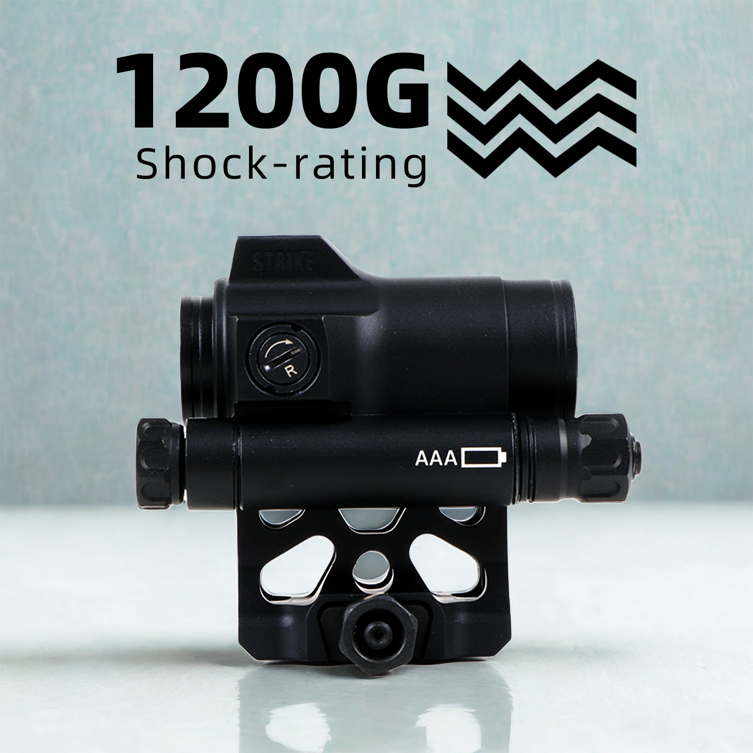 Built tough with 1200G shock resistance and IPX7 waterproof rating, the STRIKE stands up to harsh recoil and rough environments.