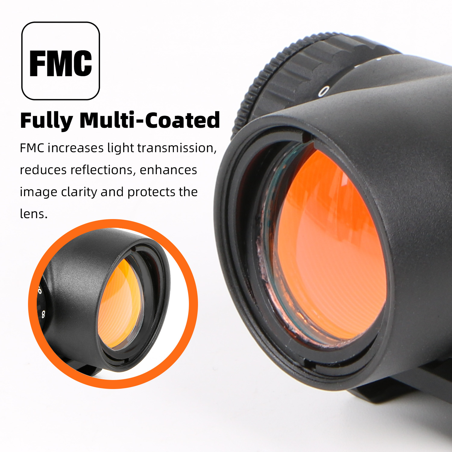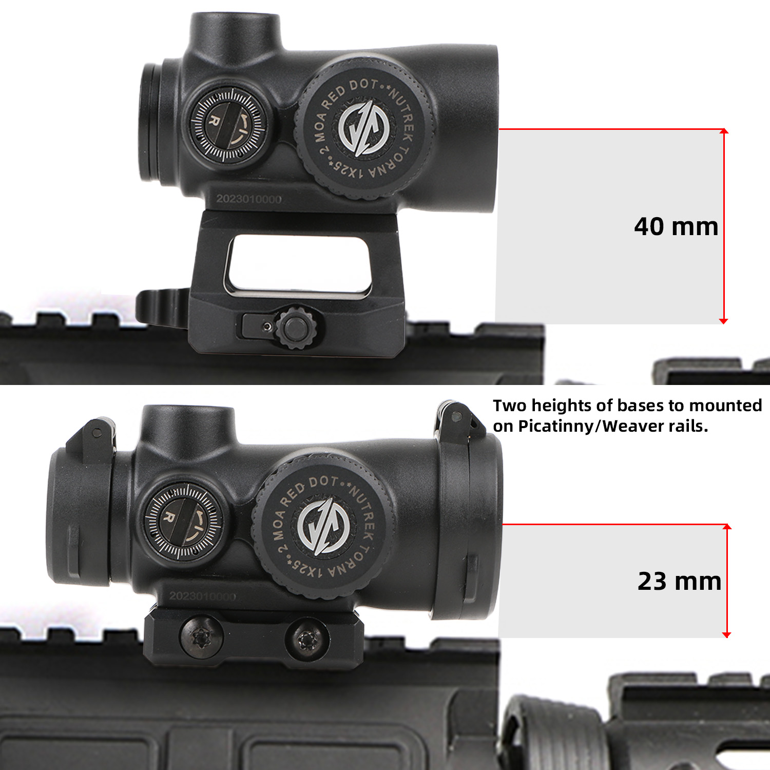 IPX7 waterproof rating ensures dependable performance in harsh weather. Includes both a 23mm low-profile mount and a 40mm QD high mount for easy installation on Picatinny or Weaver rails.