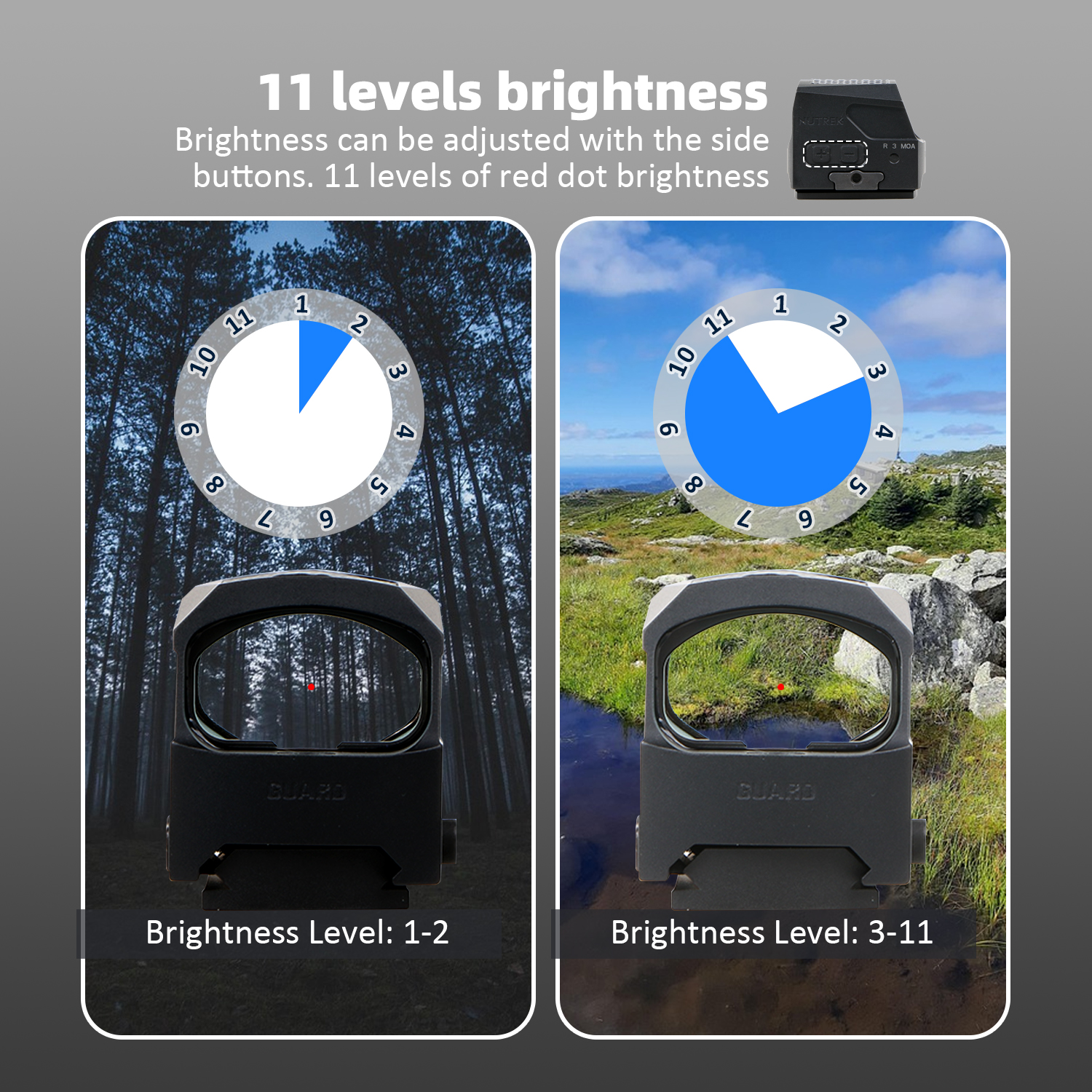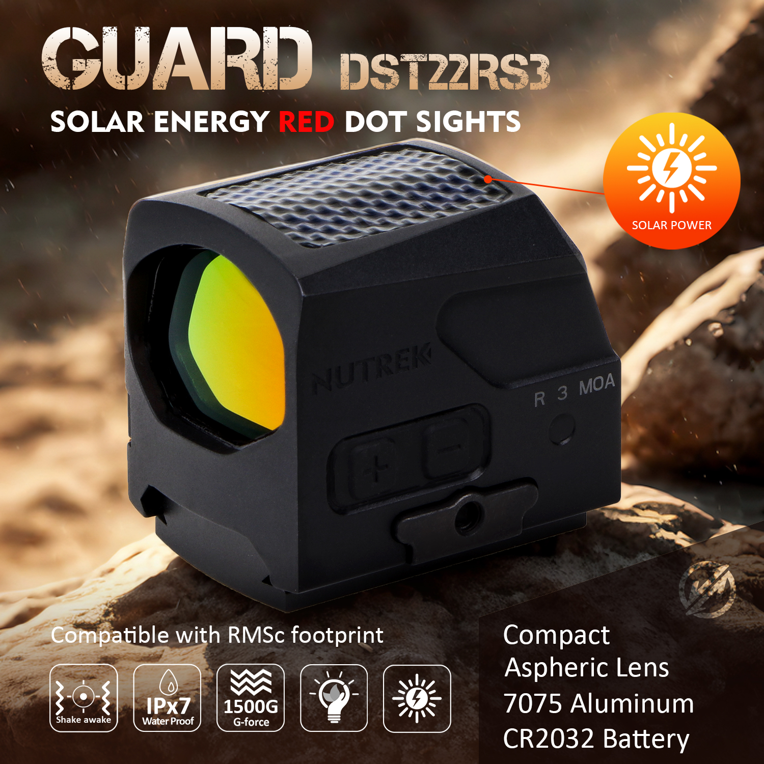 | GUARD | DST22RS3 | 3.5 MOA | Red Dot | 11 | For RMSc | 1x28x19 | 1 MOA/Click | CR2032 | 20,000+ hrs | 64 |